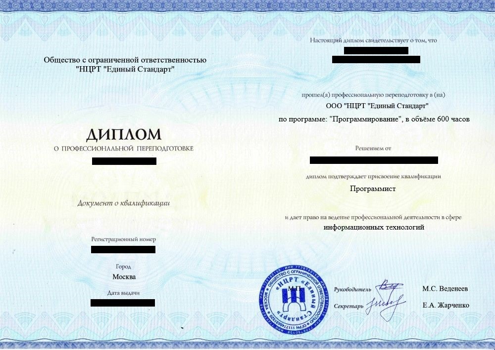 - Диплом о профессиональной переподготовке установленного государством образца. Срок действия: бессрочно
